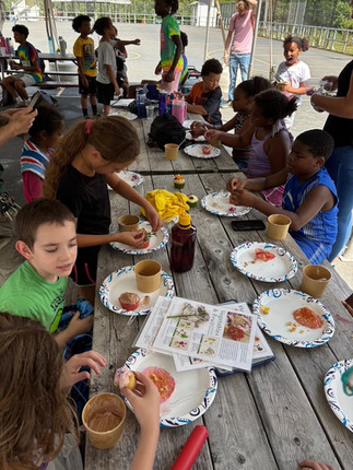 Every summer, the Harvesting History program partners with Operation Unite’s 4-H Freedom Farmers program, Red Hook Central School District Summer Camp program, and Hudson Department of Youth’s Camp Oakdale. Thanks to our program partners, we were able to reach 223 campers and nearly 70 teen counselors this year. Participants in both programs spent the summer learning a variety of garden-based activities, including how to make homemade ice cream using natural food dyes and flavorings, how to grow microgreens, create their own marbled bookmarks and macrame plant hangers, and perhaps the highlight of the summer, made smoothies using our bike-powered blender!